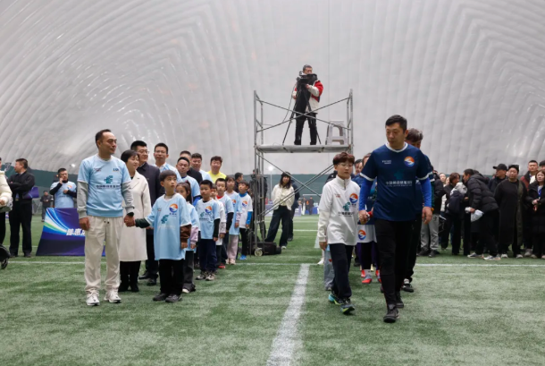 开幕会现场氛围热烈,32支球队方阵步伐铿锵、口号嘹亮,展现了连商群体昂扬奋进的风貌。足球小将的花式颠球、动感文艺表演等环节,一次次将气氛推向高潮。作为开幕会的重磅环节,大连企业足球联队与大连足球名宿队的友谊赛精彩上演,企业家与足坛名宿同场切磋,让足球精神与企业家精神在绿茵场上深度交融、同频共振。